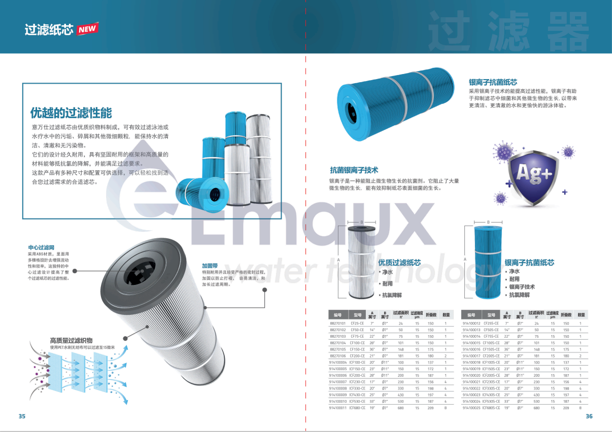 意萬仕過濾紙芯由優質織物料制成,可有效過濾泳池或水療水中的污垢、碎屑和其他微細顆粒, 能保持水的清潔、清澈和無污染物。 它們的設計經久耐用,具有堅固耐用的框架和高質量的材料能夠抵抗氯的降解,并能滿足過濾要求。 這款產品有多種尺寸和配置可供選擇,可以輕松找到適合您過濾需求的合適濾芯。