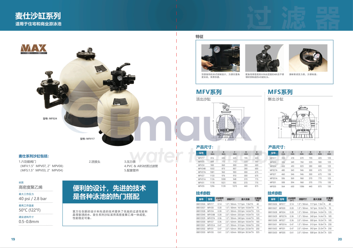 意萬仕創新的設計和先進的技術提供了優越的過濾性能和品瑩剔透麥仕系列沙缸采用高密度聚乙塔一體成型,性能穩定可靠。