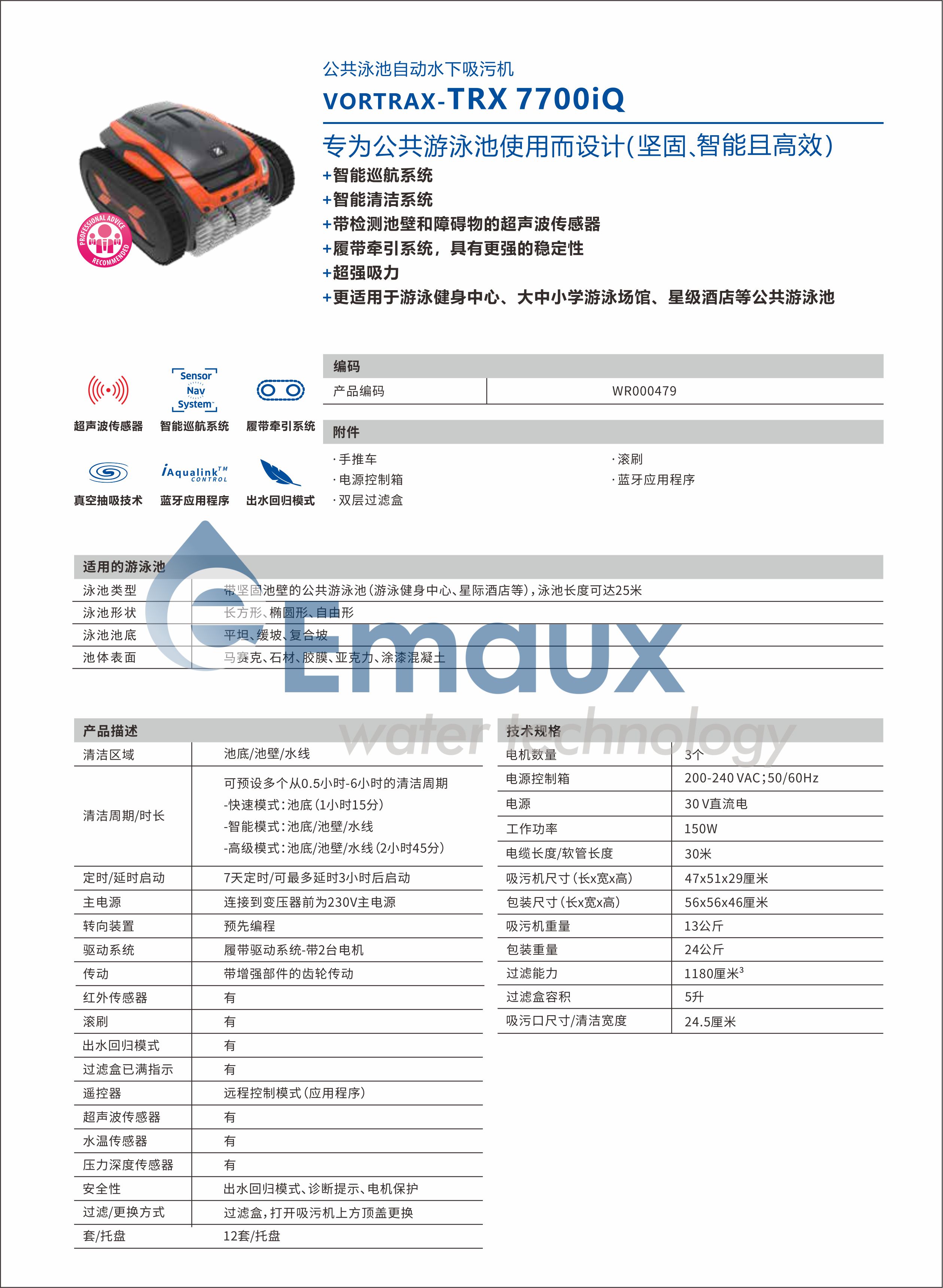 ★氣旋抽吸技術+超強吸污能力 ★雙層過濾袋+過濾盒一鍵式更換 ★牽引系統具有更強的穩定性 ★帶檢測池壁和障礙物的超聲波傳感器 ★能配合手機APP遠程控制 ★智能巡航系統 ★配有手推車,使用更方便
