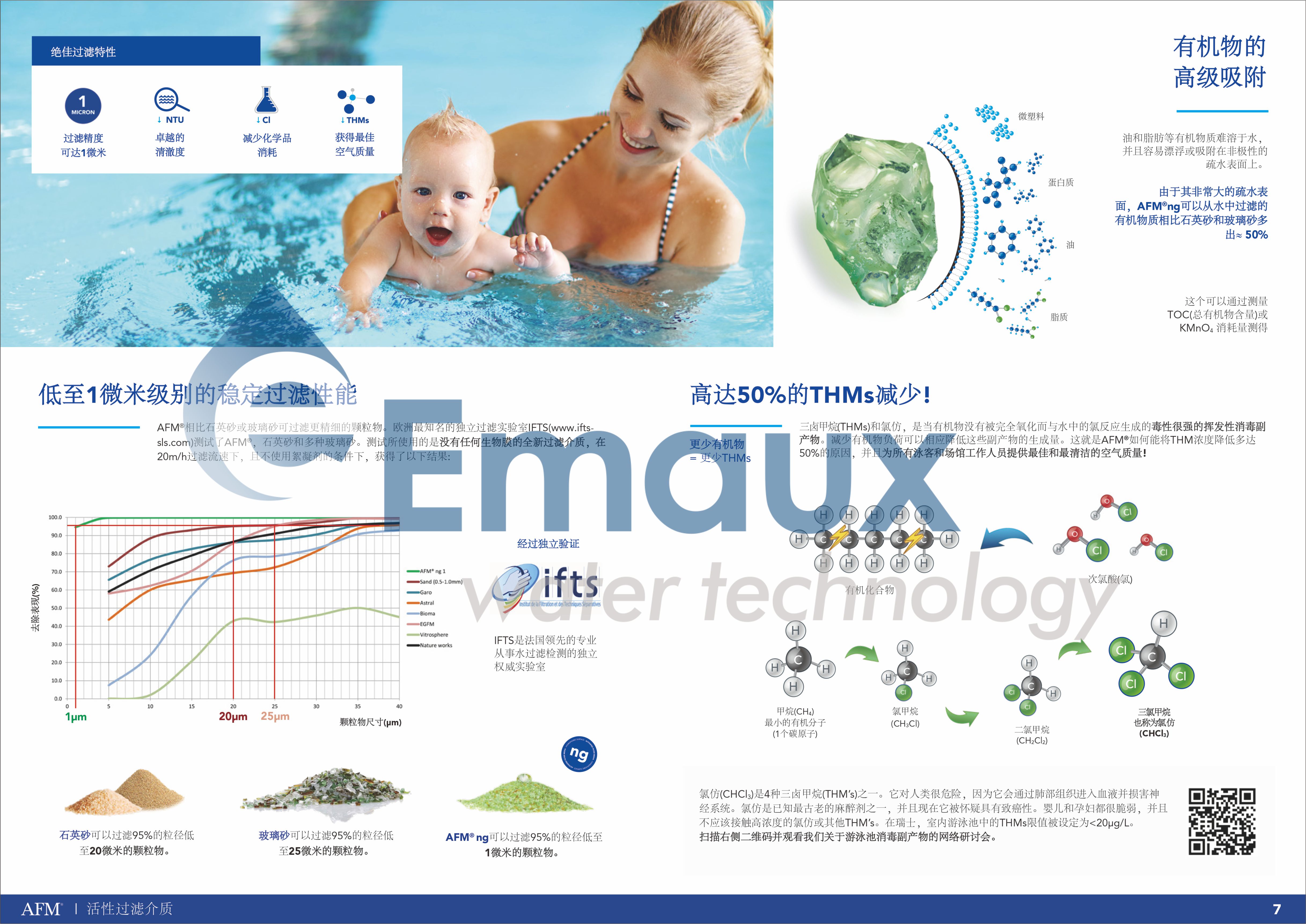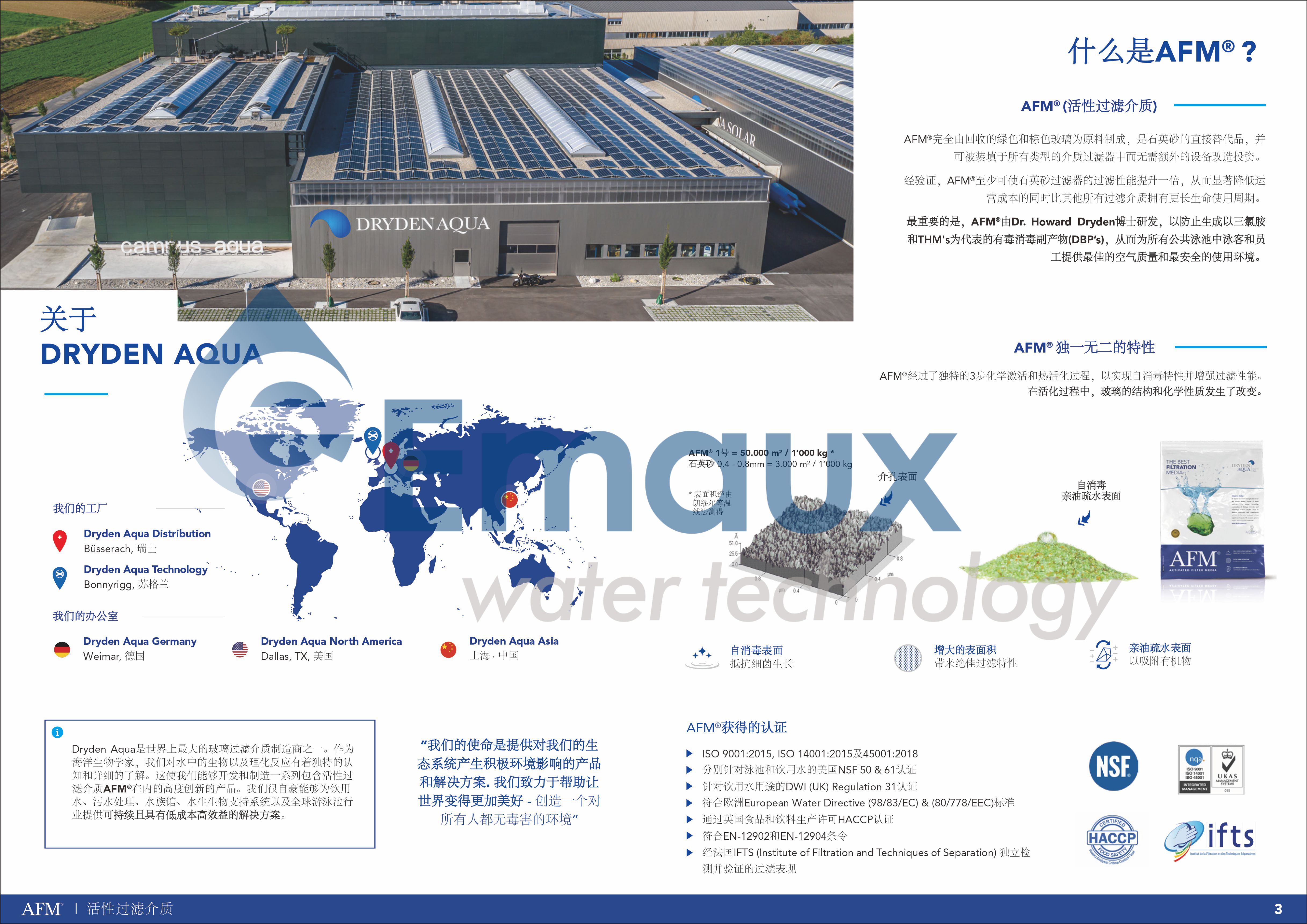 -AFM活性過濾介質適用于各種游泳池、水上樂園、溫泉、鹽水池、污水處理、魚類養殖、飲用水、海洋館等. - 在使用AFM時,無需對基礎設施進行任何更改,可以直接更換石英砂或其他品牌玻璃沙,適用于各種氧化方法和所有溫度。