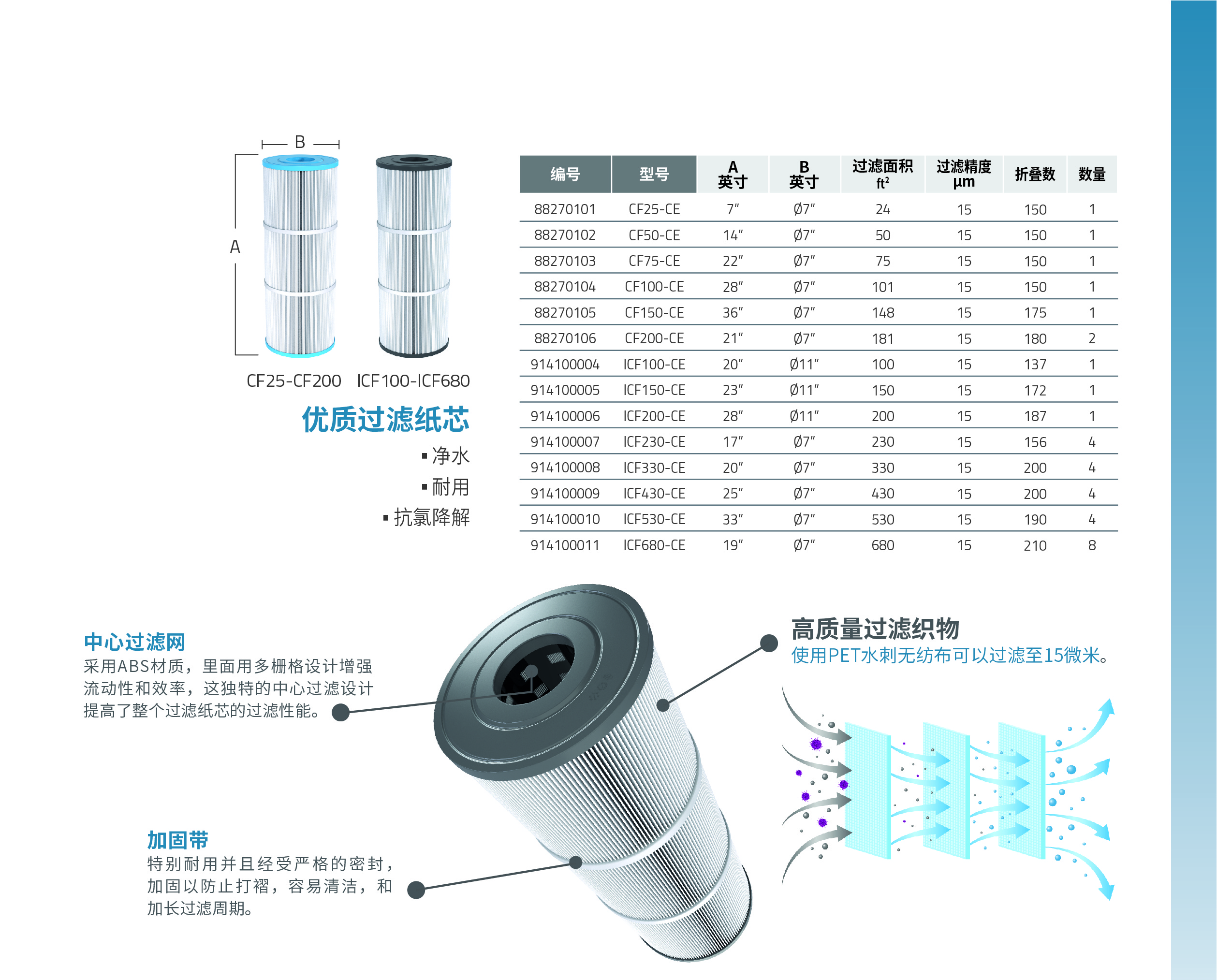 意萬仕過濾紙芯是一種先進(jìn)的過濾解決方案,旨在提升泳池水質(zhì),確保游泳環(huán)境更加清潔和健康。這些濾 芯采用高密度材料制造,提供多種微米等級(jí)和材料選擇,能夠有效過濾小至5微米的顆粒,去除水中的沉積 物、污垢和污染物。 意萬仕過濾紙芯采用優(yōu)質(zhì)織物材料,能夠有效過濾泳池或水療池水中的污垢、碎屑和其他顆粒。其設(shè)計(jì)堅(jiān) 固耐用,配備穩(wěn)固的框架和優(yōu)質(zhì)材料,能夠抵抗氯降解,滿足過濾需求。 與意萬仕過濾器兼容,安裝和維護(hù)簡(jiǎn)單,是泳池業(yè)主的理想選擇。我們提供多種尺寸和配置,確保您能找 到適合特定泳池或水療池的過濾元件。 通過使用意萬仕過濾紙芯,用戶不僅能享受到卓越的水質(zhì)清澈度,還能提升過濾系統(tǒng)的使用壽命和效率。 為了保持水質(zhì)清潔、清澈且無污染,意萬仕過濾紙芯是最佳選擇。讓意萬仕創(chuàng)新的過濾紙芯升級(jí)您的泳池 體驗(yàn)!