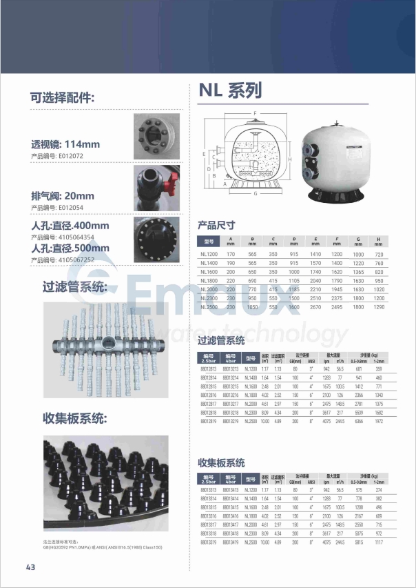 EMAUX   - "NL" SERIES FIBERGLASS SAND FILTERS