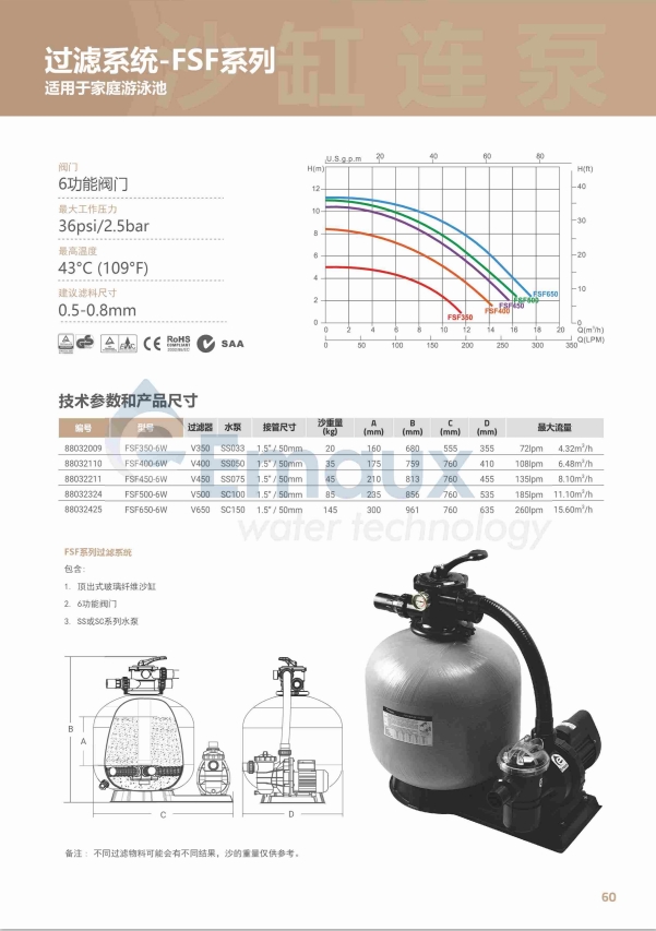 | EMAUX - "FSF350-6W "纖維沙缸連泵 | |||