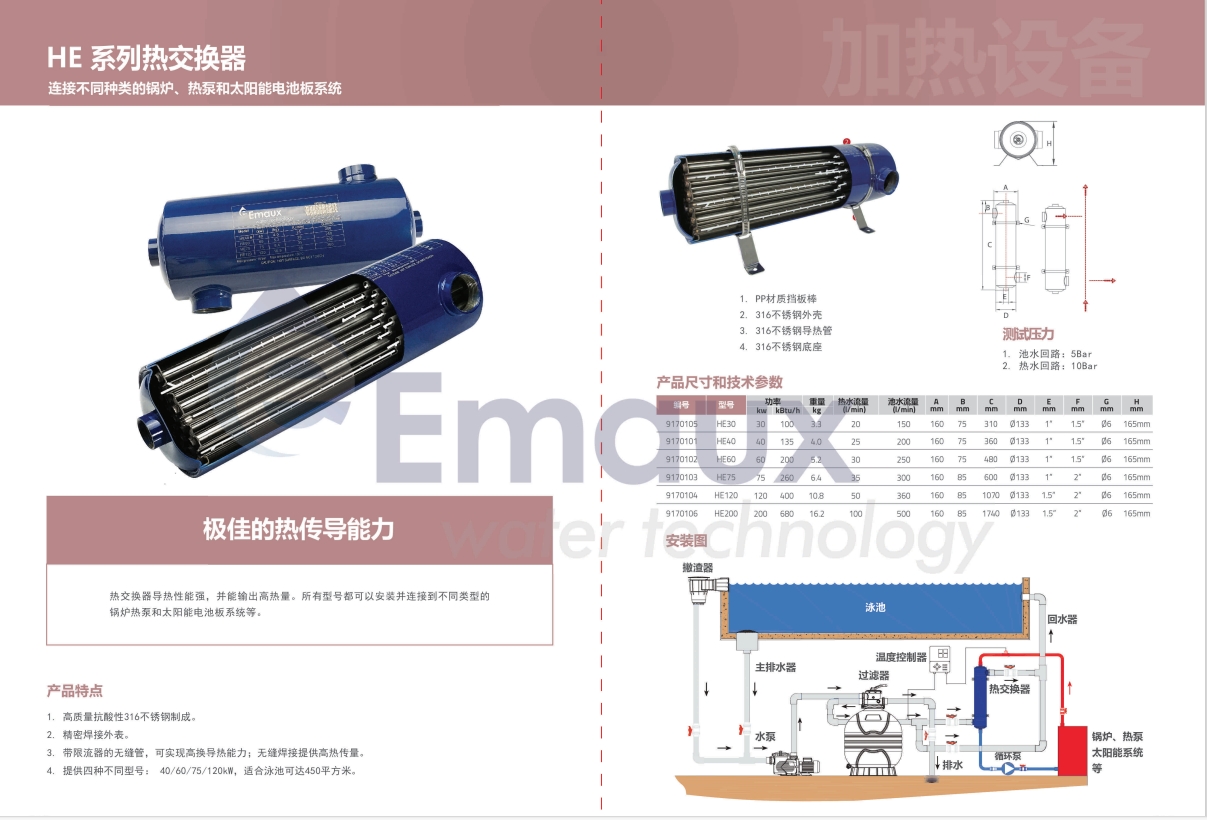 熱交換器導熱性能強,并能輸出高熱量。所有型號都可以安裝并連接到不同類型的鍋爐熱泵和太陽能電池板系統等。