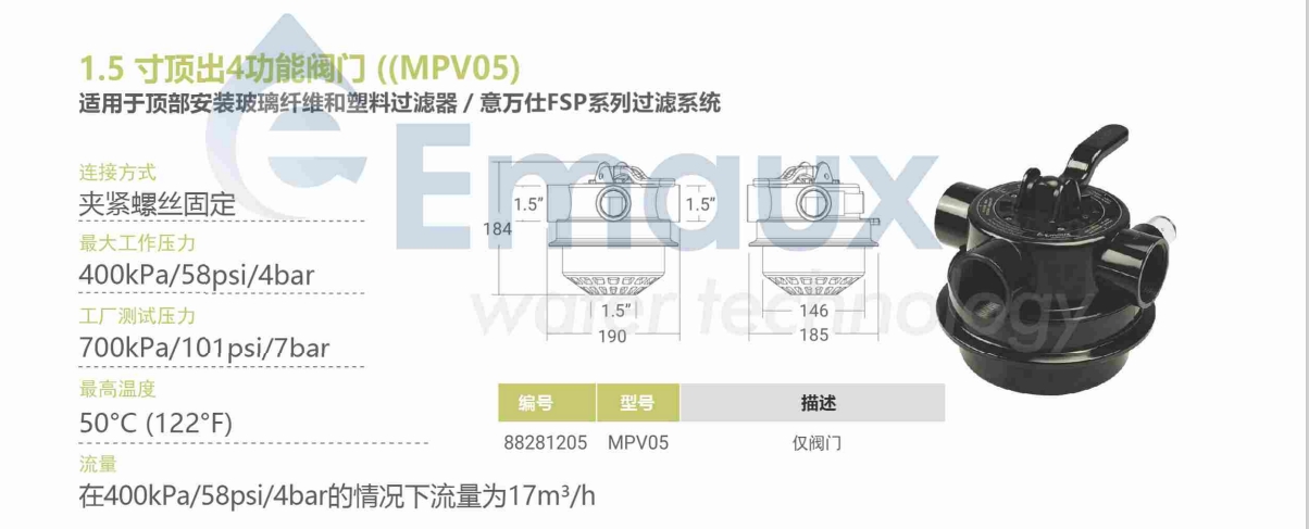 | EMAUX - 1.5"TOP MOUNT 4-WAY Valve | |||
