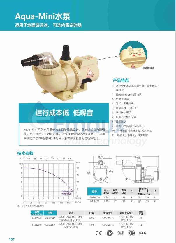 競(jìng)技池Aqua Mini系列水泵是專為地面游泳池設(shè)計(jì)。配有過(guò)濾籃和透明蓋,易于維護(hù)。計(jì)時(shí)器可隨心所欲根據(jù)您指定時(shí)間開(kāi)關(guān)。一旦用戶設(shè)定了啟動(dòng)時(shí)間和持續(xù)時(shí)間,泵將每天相應(yīng)地啟動(dòng)和運(yùn)行。