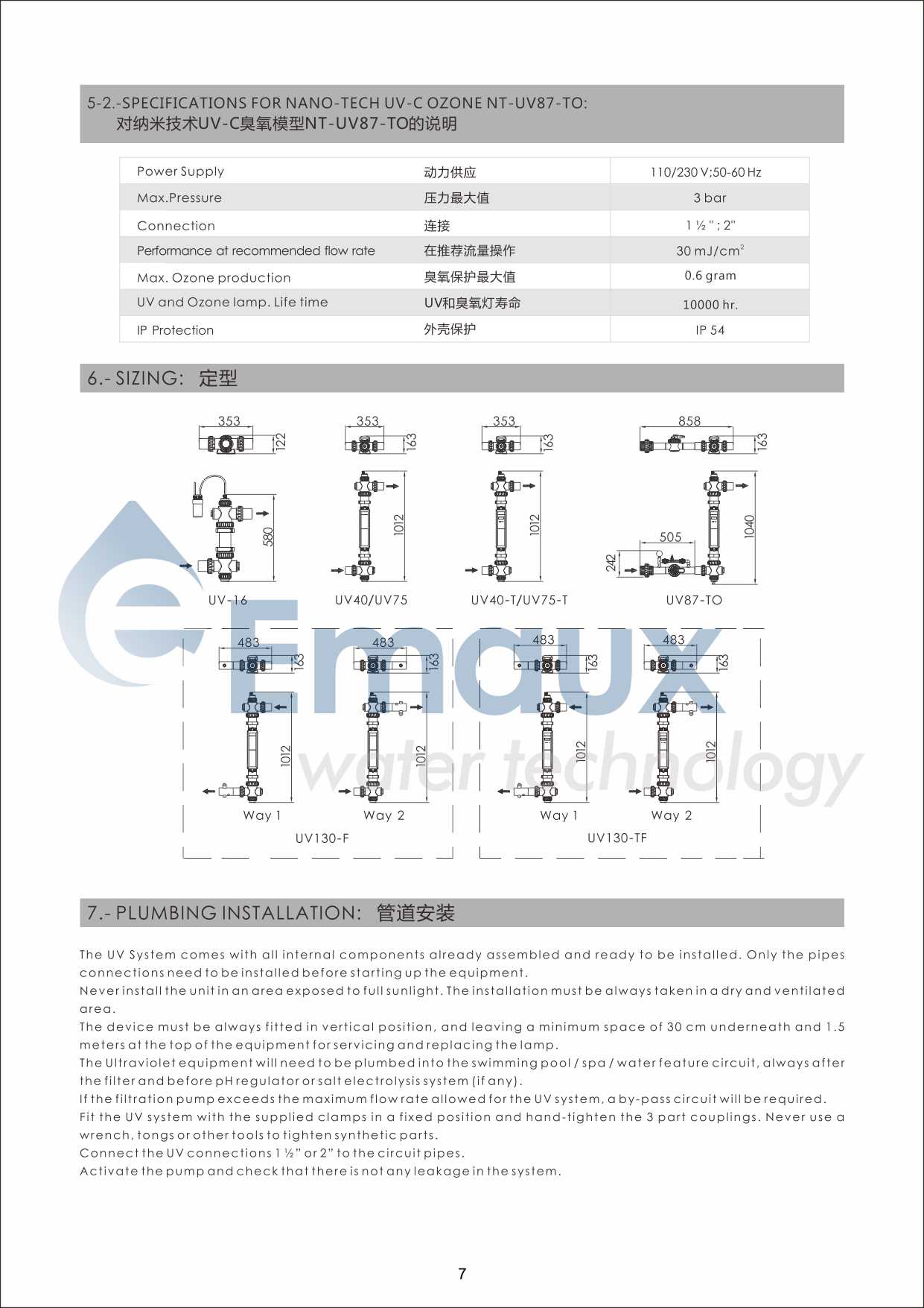 您的位置:首頁>產品概覽>消毒系統>Nano Tech UV-C Ozone 不銹鋼過水式臭氧紫外線器