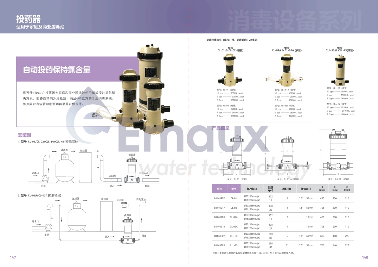 | Emaux CL series automatic chlorine feeder | |||