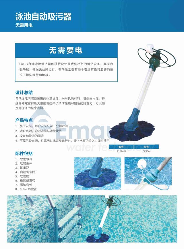 Emaux自動泳池清潔器的獨特設(shè)計是我們出色的清潔設(shè)備,具有自吸功能,確保無故障運行。電動吸塵器有助于在沒有任何監(jiān)督的情況下擦洗墻壁和地板。