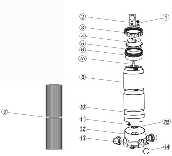 CF系列紙芯缸缸身采用防紫外線材料,更有效地延長產品的使用壽命。頂蓋采用螺母鎖緊設計,更易于清潔和產品維護,同時設有減壓裝置,可以輕松排出壓力,頂蓋配備壓力表,可以觀察工作運行壓力