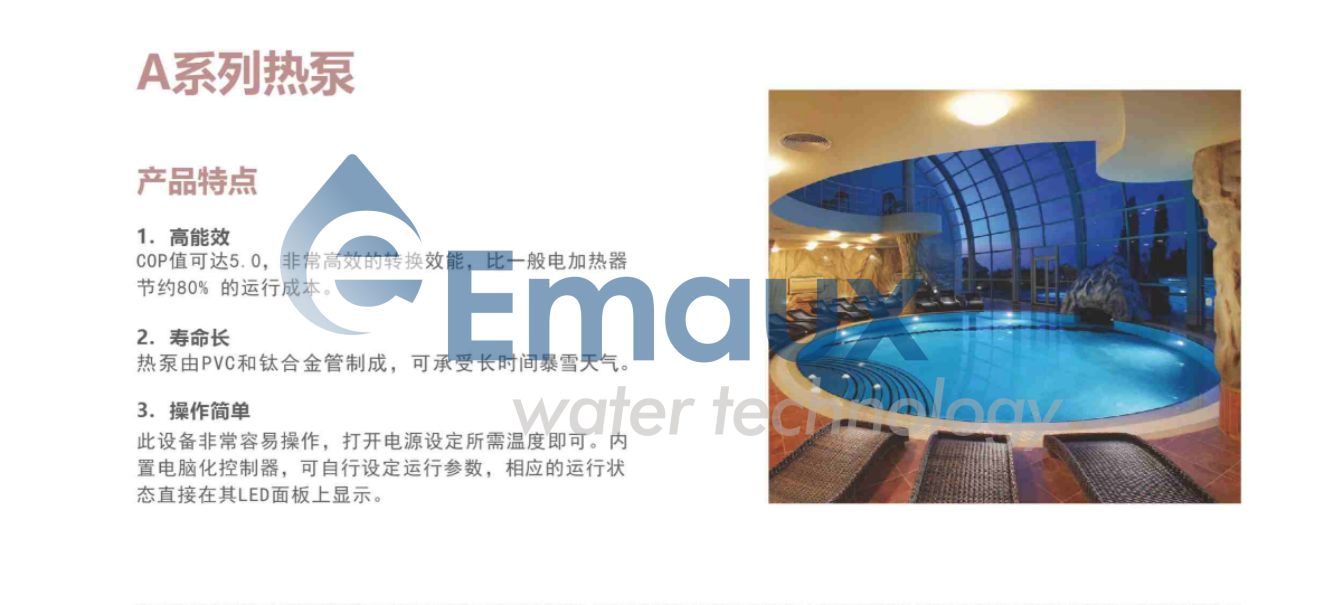 熱泵由PVC和鈦合金管制成,可承受長時間暴雪天氣。